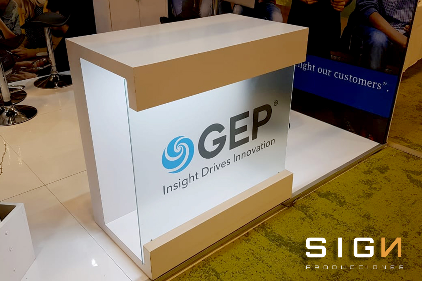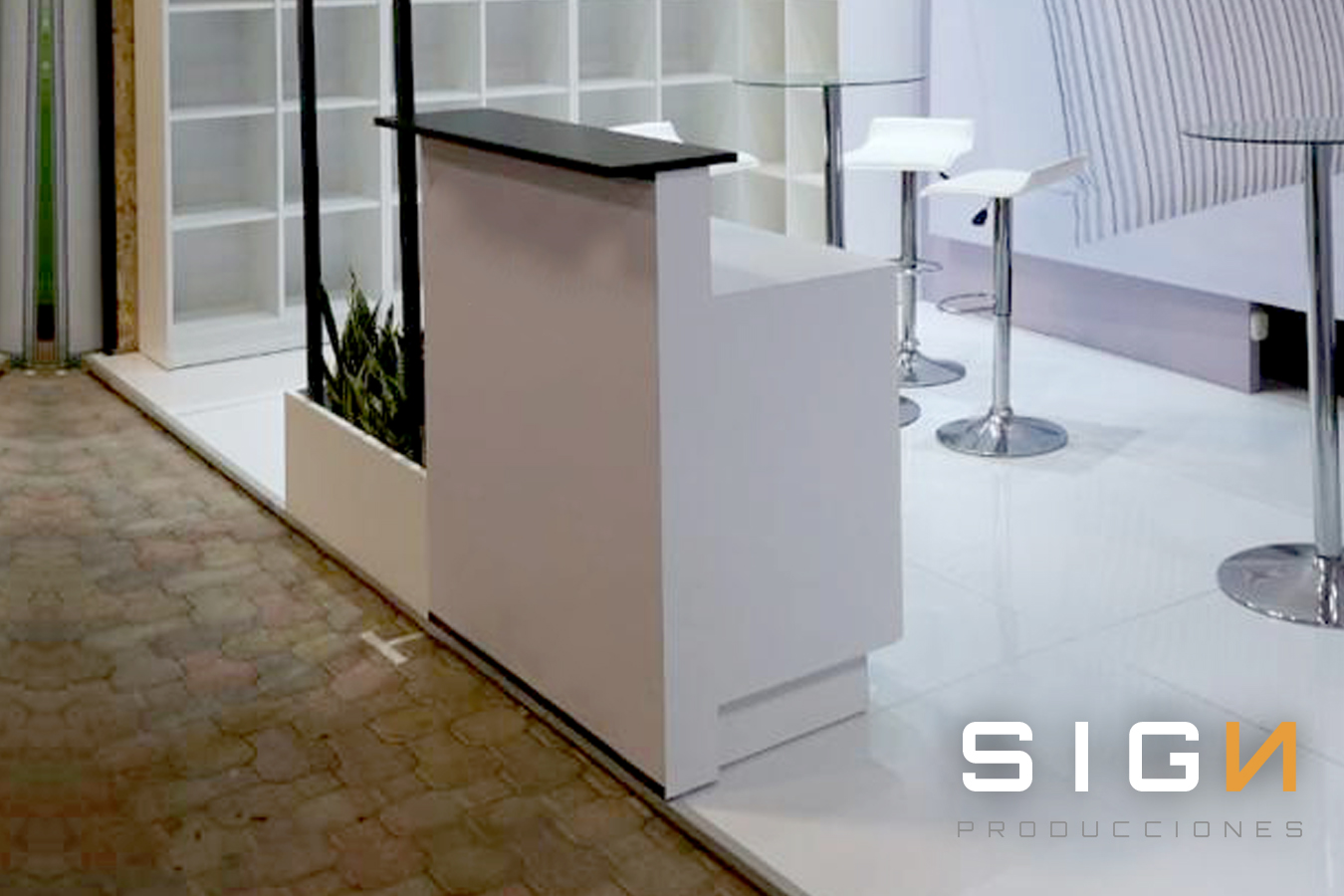 Counter luminoso con frente de vidrio