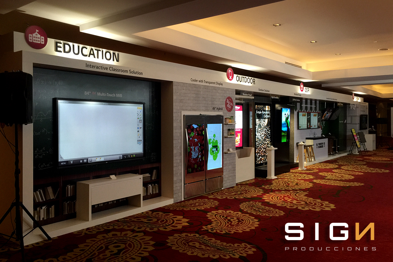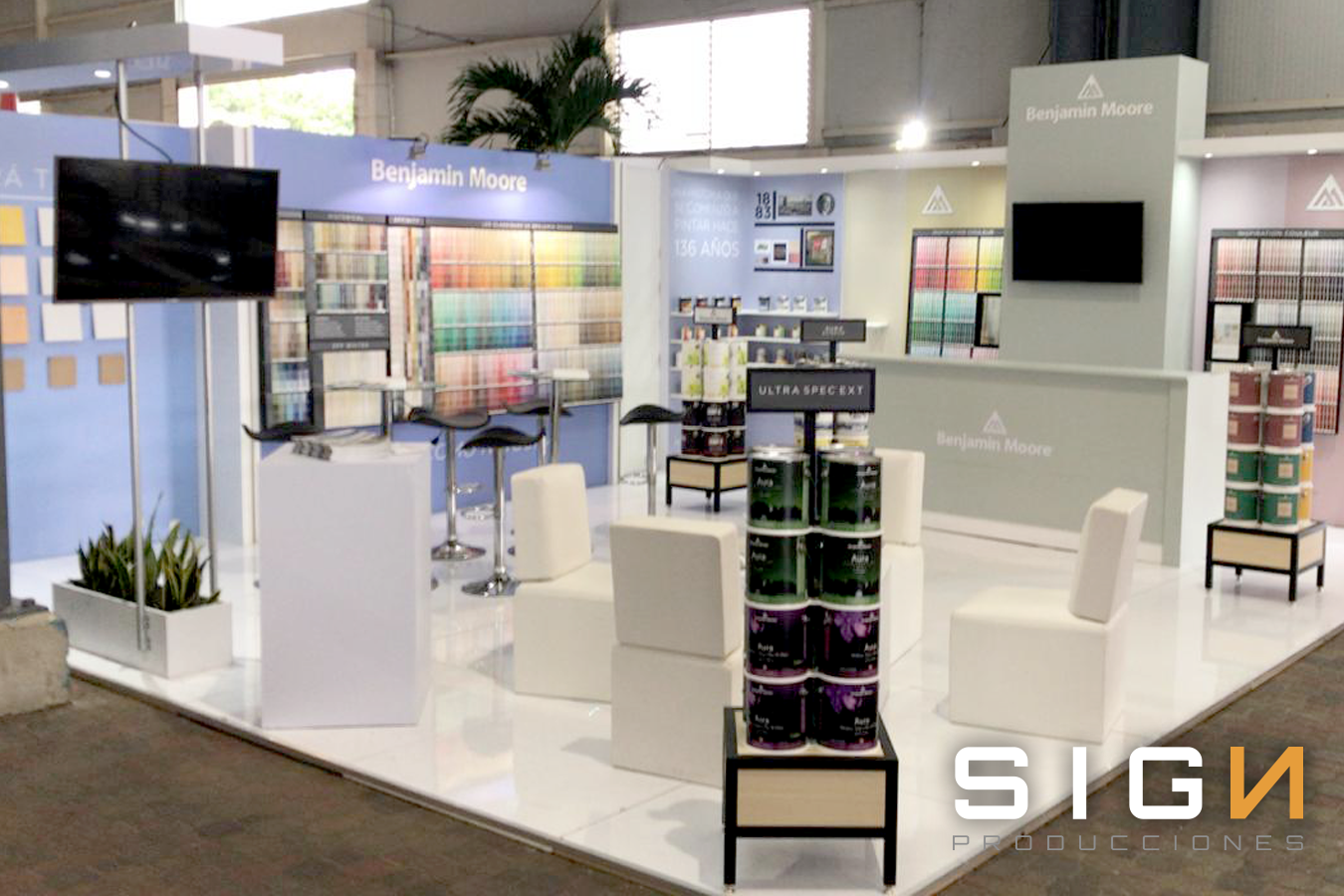 Diseño, Frabricacion y Montaje, Piso, Credenzas, Arturitos, Back Panel, Impresión Digital, Pantalla LCD.