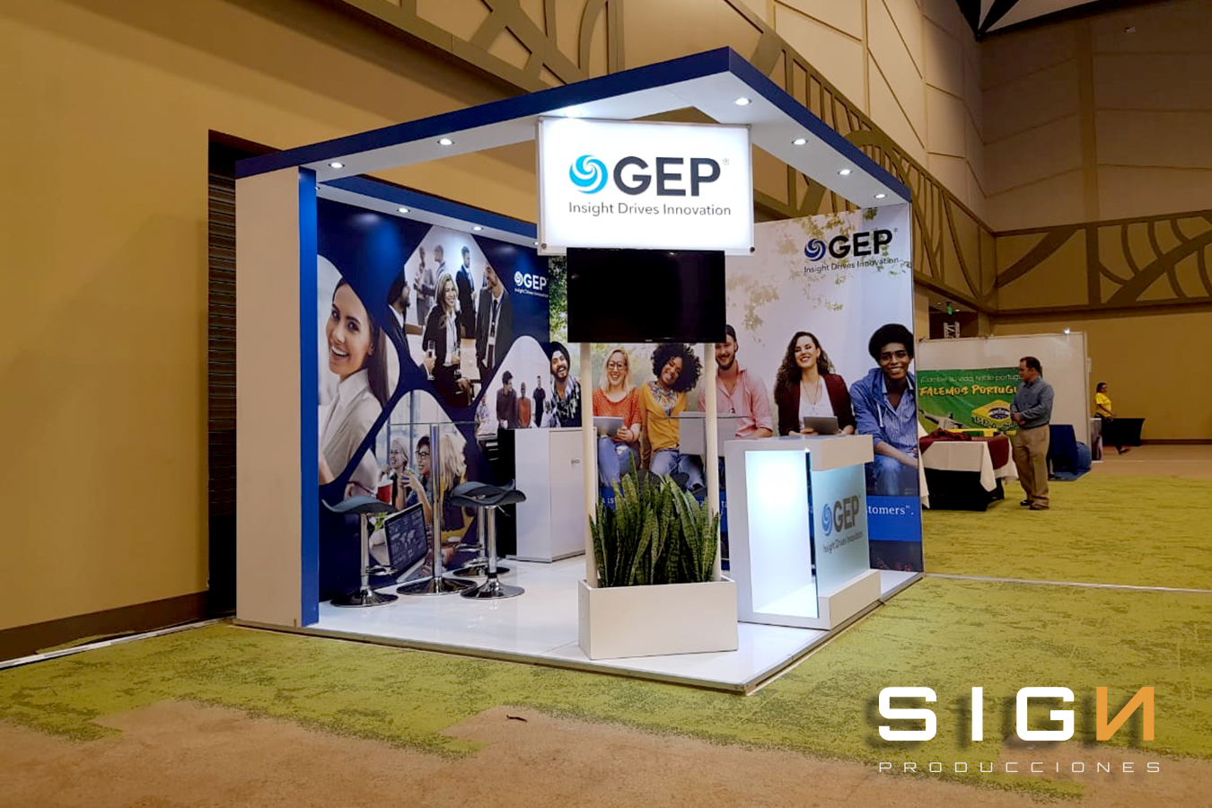 Diseño, Frabricacion y Montaje, Piso, Back Panel, Area Lounge, Counter, Jardineras, Impresión Digital, Pantalla LCD.